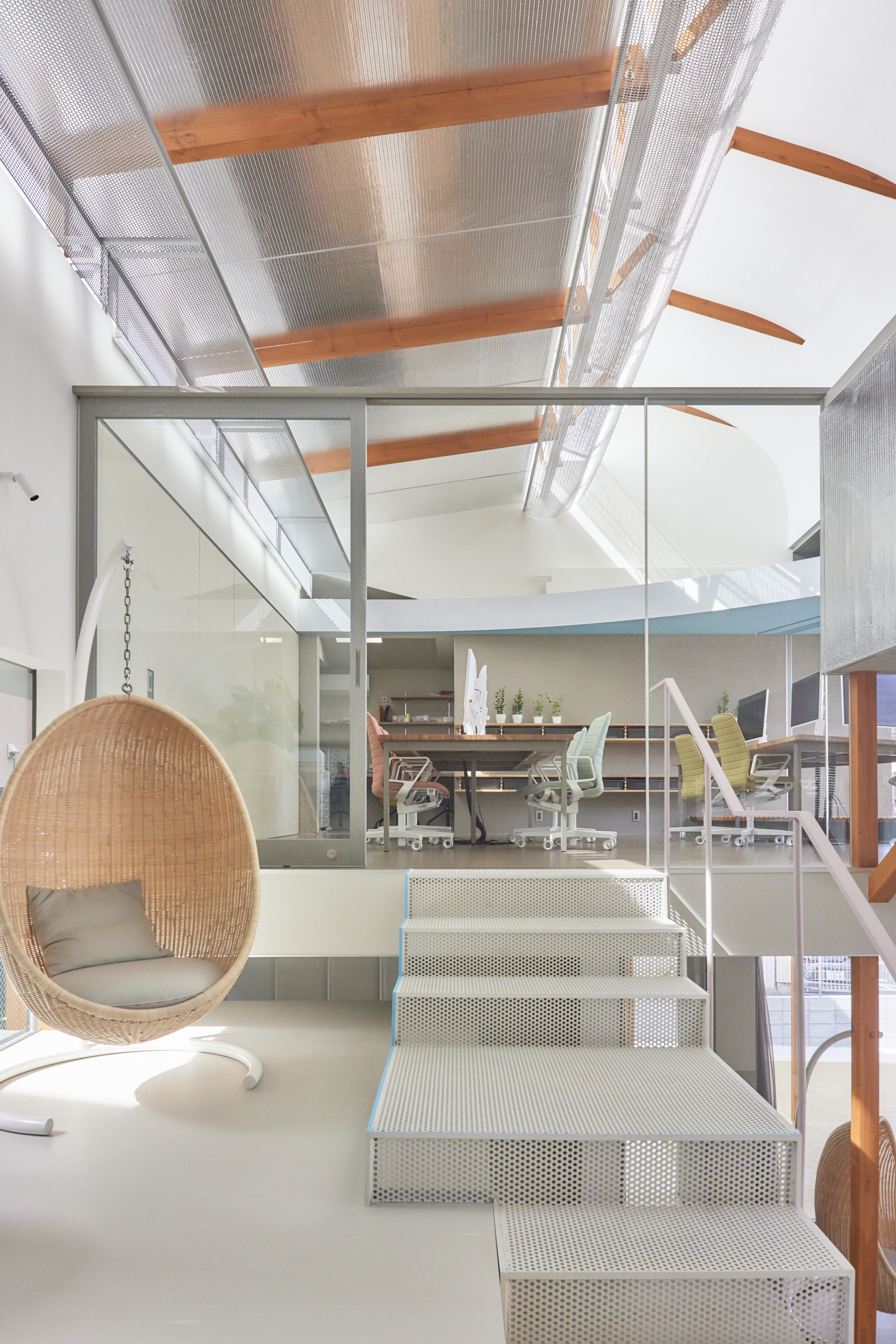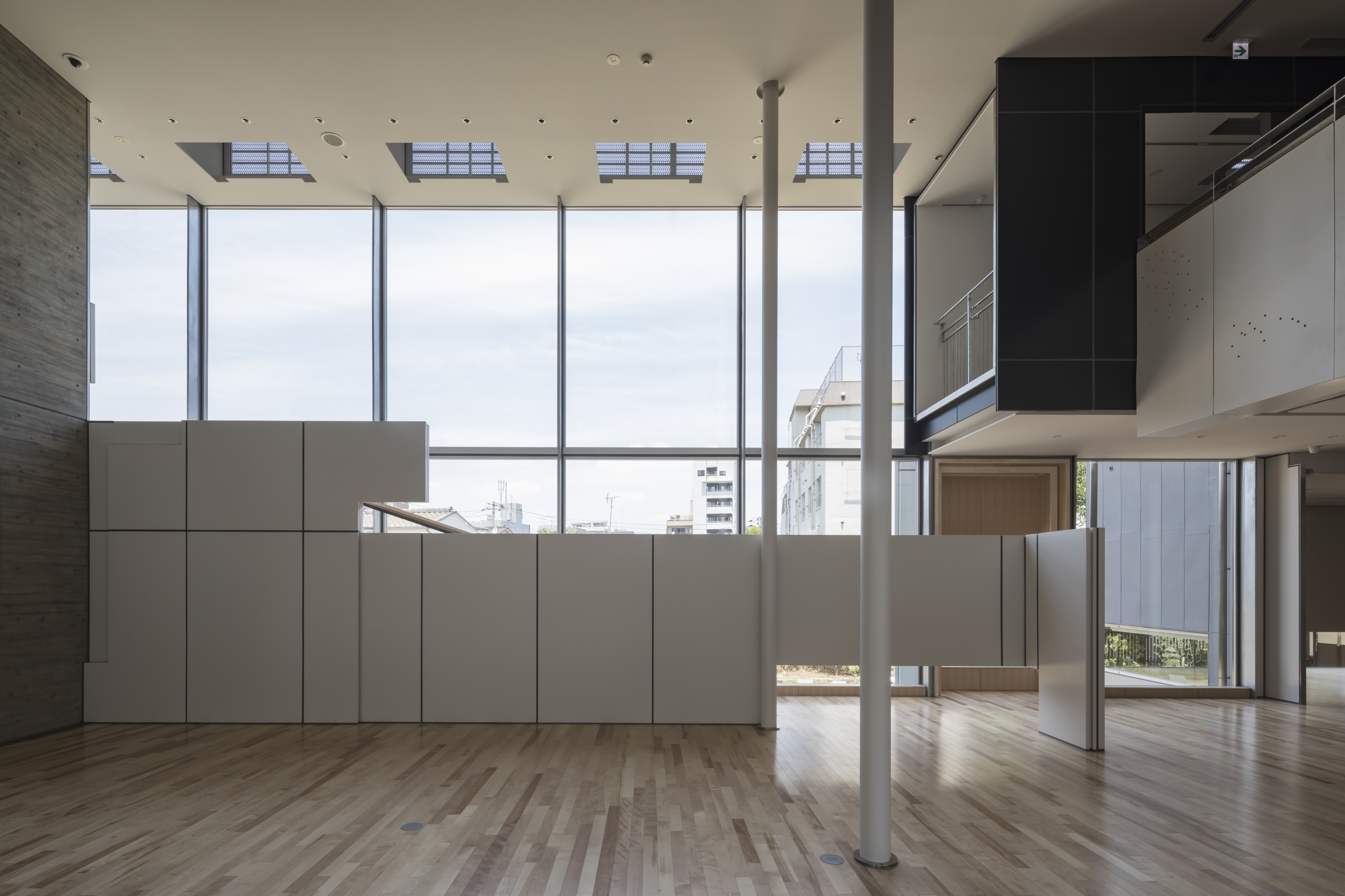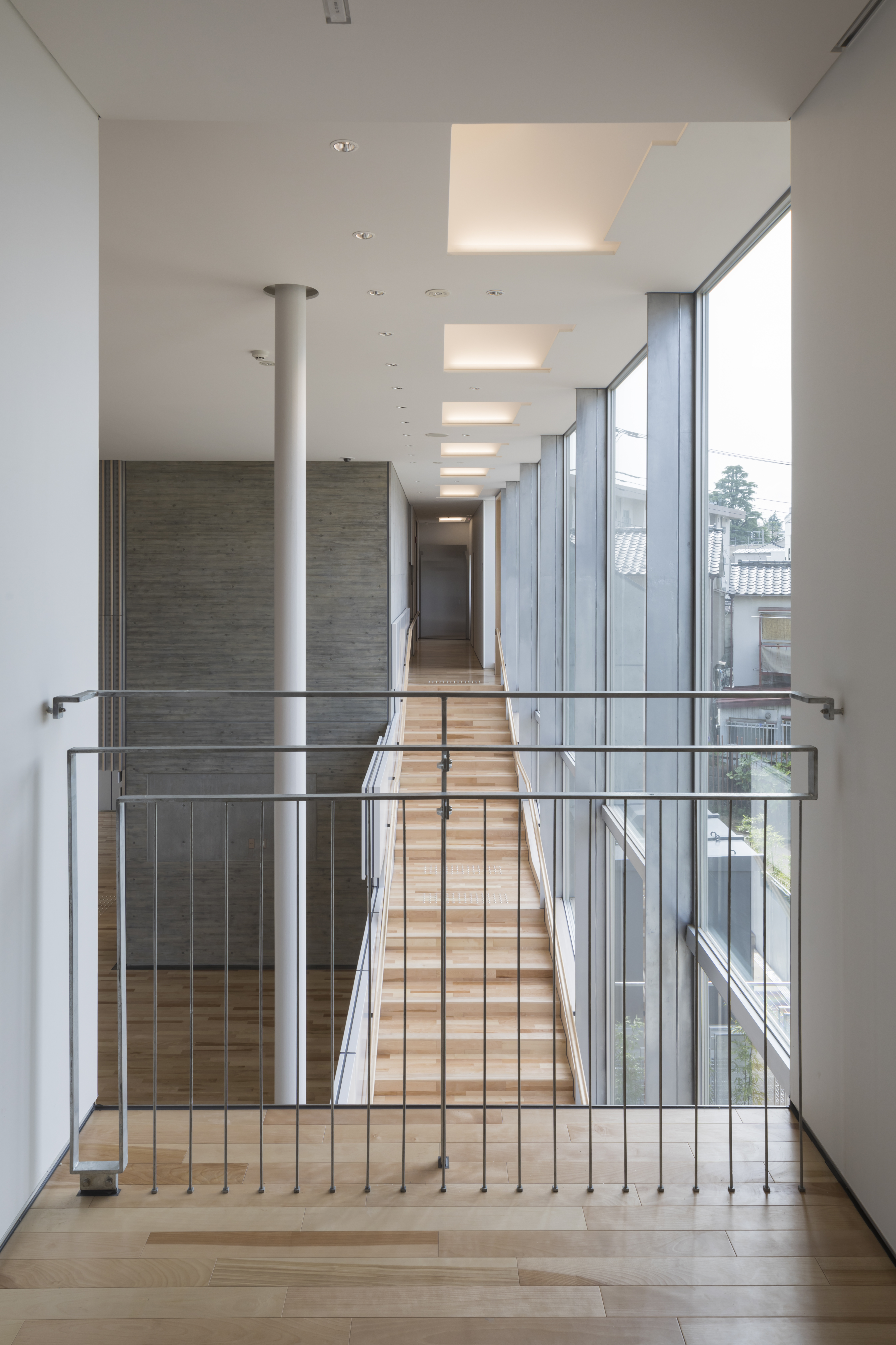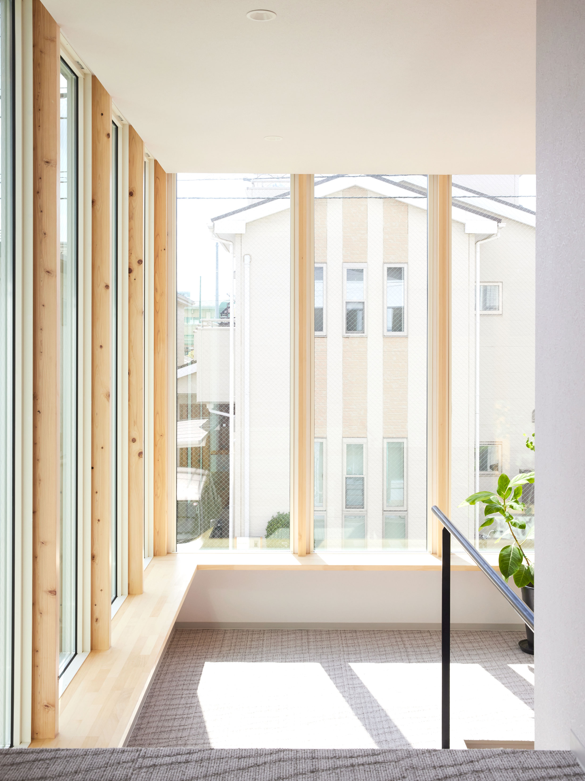 ロフトの立ち上りを下げて手摺とネットを付けることで、広がりをつくると同時に子供達が安心して遊べる様にしています。