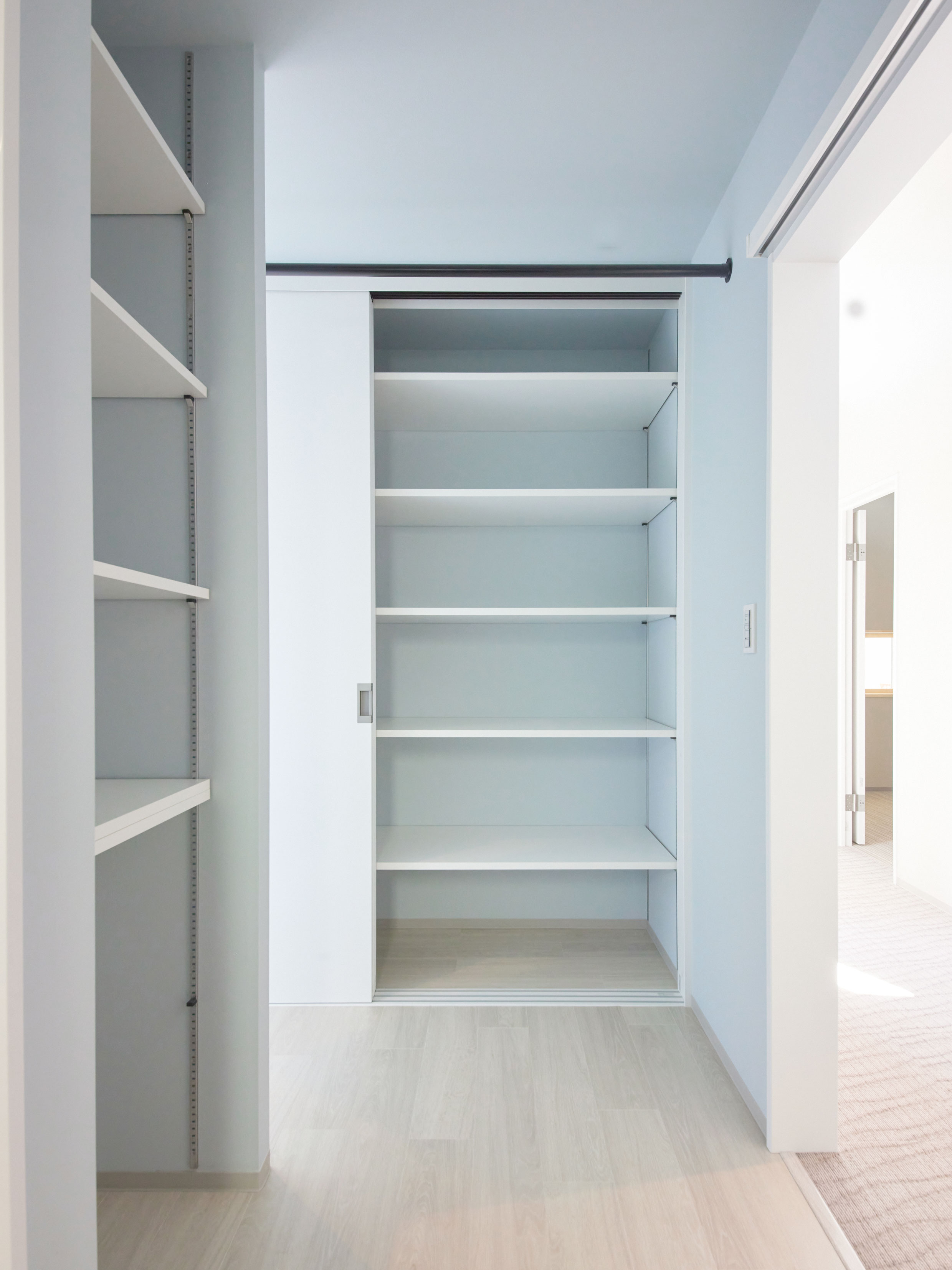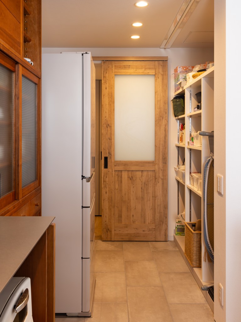 収納の片方をパントリーとして、小さなキッチンを置き、ささやかな晩餐も行える様になっています。