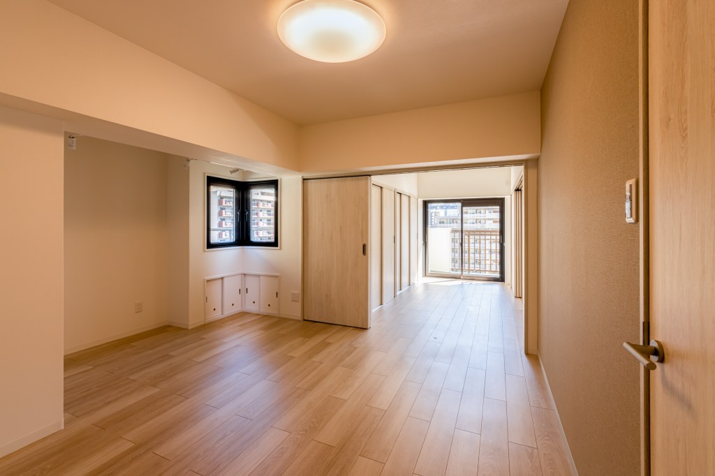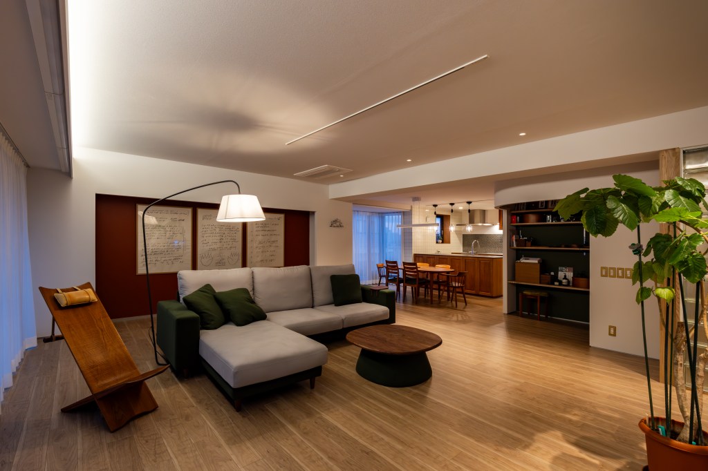 お子様達の独立・結婚・出産を経て、今はご夫婦おふたりで住まわれているご自宅2階の、子供部屋2部屋を繋げて、お孫さんやお友達が気軽に集まれるリビングをつくりたいというご依頼です。